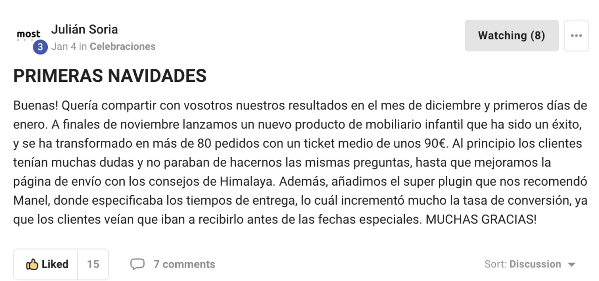 Su Resultado: Tras 3 meses re-estructurando su estrategia con la página web, pasaron de "tener perdidas" a facturar 7.000€ al mes con +30% de margen de Beneficio Neto. Y podrían haber facturado más del doble, solo que se quedaron sin stock porque no se esperaban "tal volumen de pedidos".