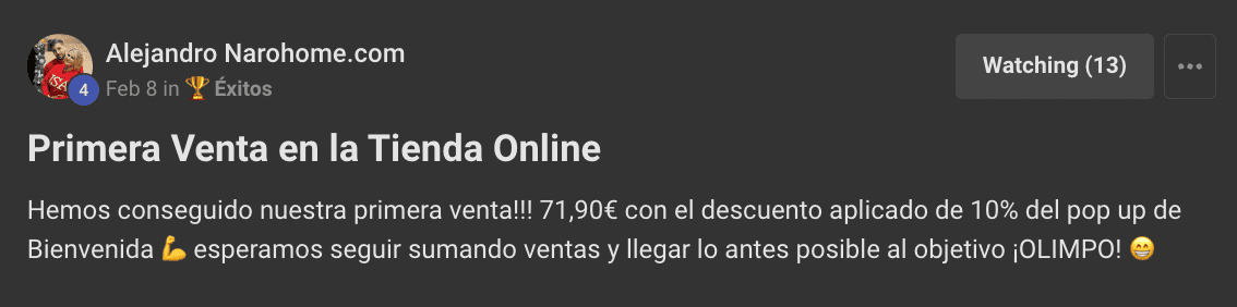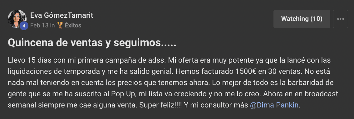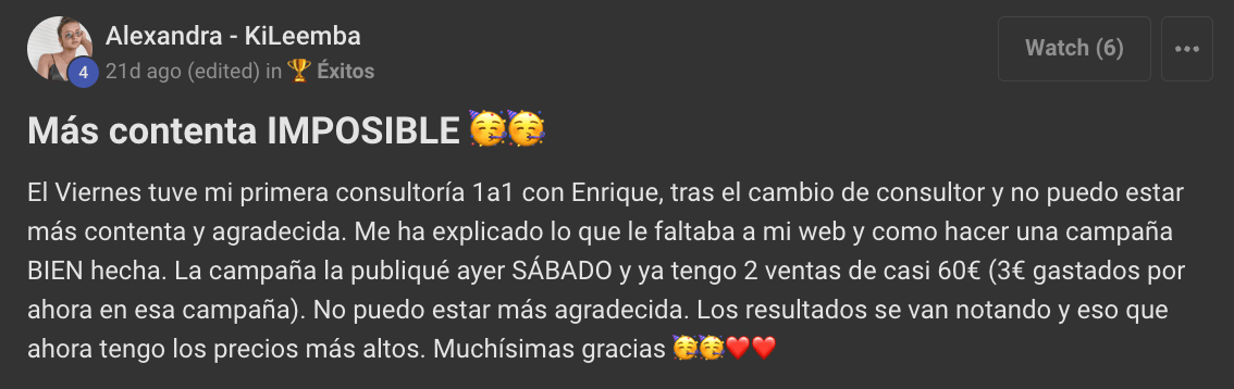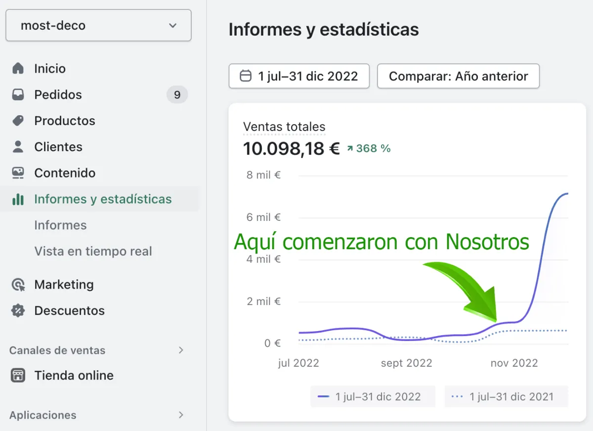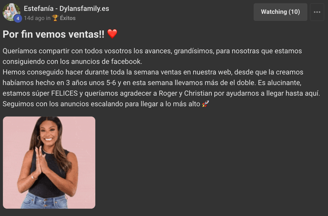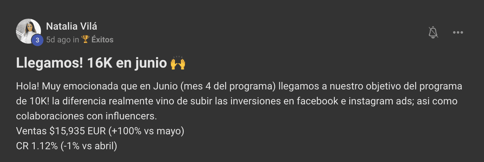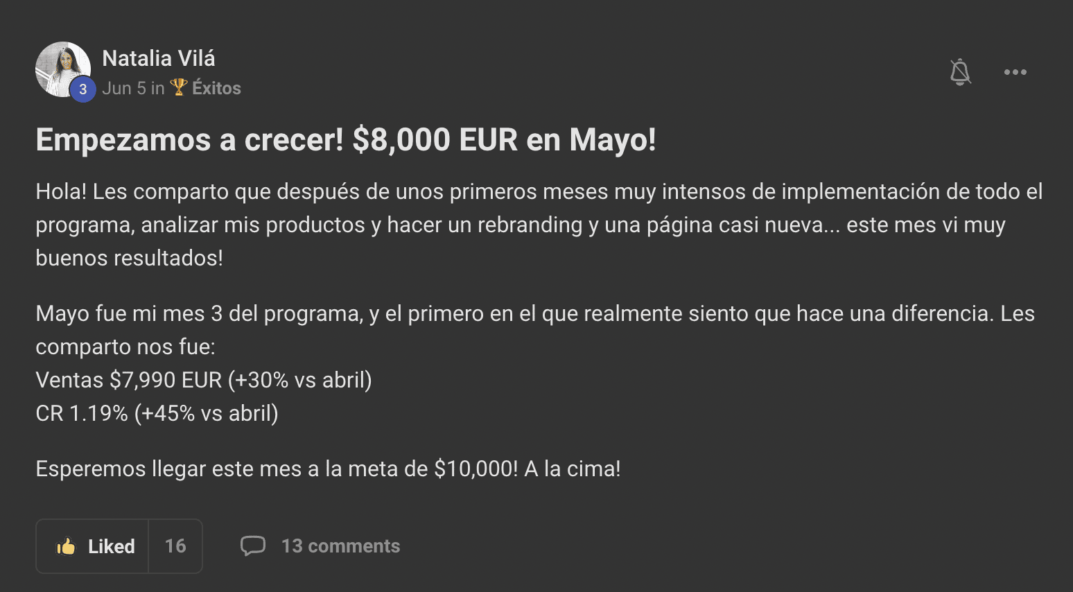 Pasó de tener una tienda online que no generaba ni una venta a tener varios pedidos al día desde que aplica nuestras estrategias y consejos. Ahora, ya estamos escalando para romper la barrera de los 10.000€ al mes recurrentes también con su proyecto.