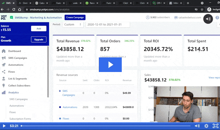 SMS (Otra de nuestras 5 fuentes de tráfico Orgánico "Gratis") 52.000$ = 46.000€ Facturados con las campañas SMS del año 2021