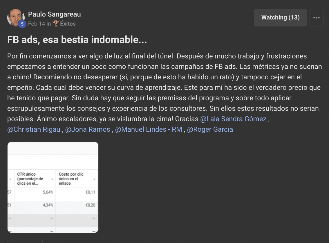 Al generar miles de facturación extra invirtiendo solo 73€ por campaña orgánicas, empezó a generar muchísimo más beneficio NETO para su bolsillo que entraba en su banco cada mes.