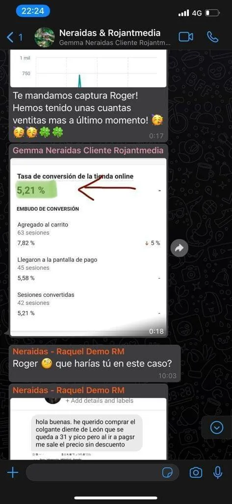 Tasa de conversión Neraidas.com durante una campaña con nuestra estratégia (de cada 100 visitantes a su web, le compran 5,21)